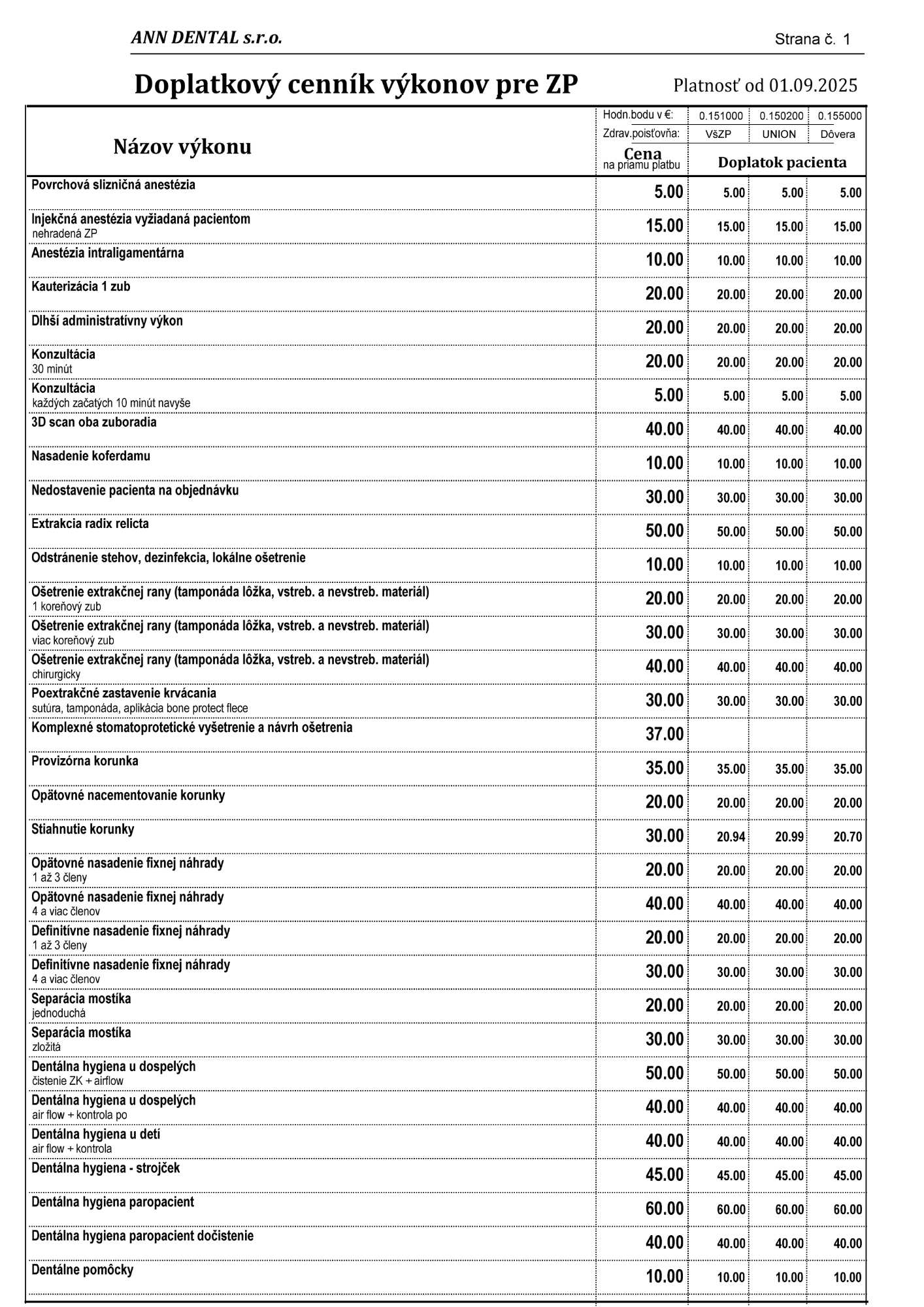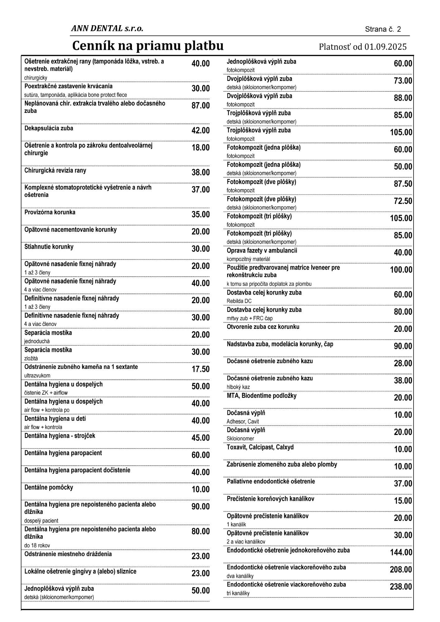 Cenník